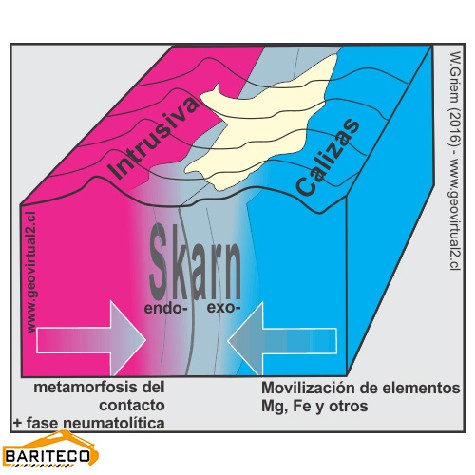 تركيب اين اسكارن ها توسط تركيب سنگ شناسي (واكنش پذيري شيميايي) سنگ هاي ميزبان كنترل ميشود.